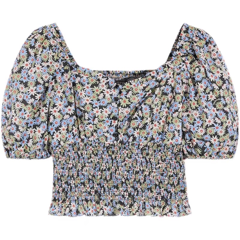 Áo hoa kiểu Peacebird chất đẹp Dáng croptop xinh xinh, mix với short như hình là đẹp ạ, chân váy hay quần đều ok Sẵn sz S M S tay áo 25 ngực 71 co giãn vai 29 M tay áo 26 ngực 74 co giãn vai 30