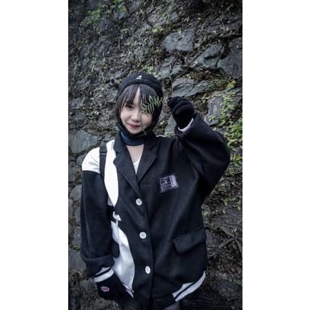 Áo khoác bomber cổ vest đen trắng cá tính Hàn Quốc - Áo blazer cách điệu unisex nam nữ