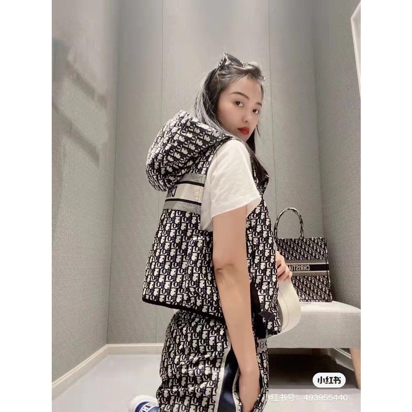 Áo khoác có mũ trùm đầu không tay họa tiết oblique thời trang cao cấp Christian Dior