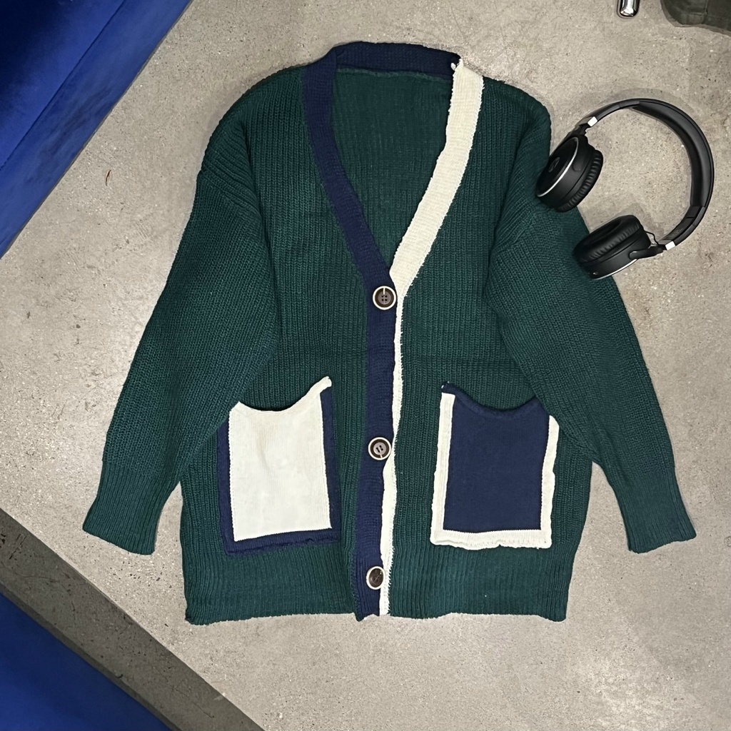 Áo Khoác Cadigan Len Phối Trơn Nam Nữ Design Hot