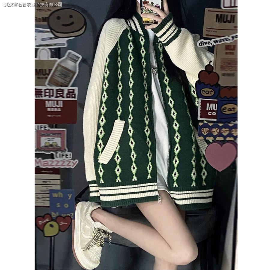 Áo Khoác Cardigan Dệt Kim Dáng Rộng Phối Khóa Kéo Màu Xanh Lá Phong Cách Hàn Quốc Thời Trang Xuân Thu Phương Tây Dành Cho Bạn Nữ