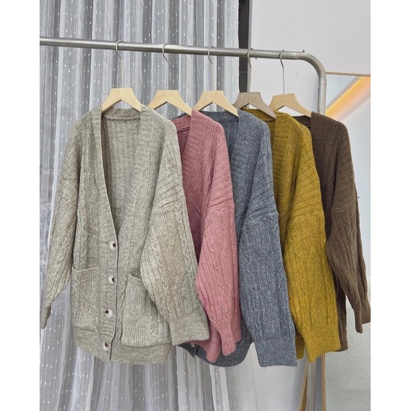 Áo khoác cardigan len vặn thừng dày dặn dáng rộng Quảng Châu