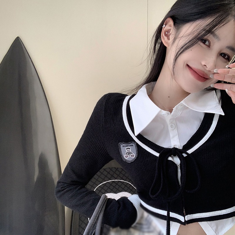 Áo Khoác Cardigan Tay Dài Cổ Bẻ Màu Sắc Tương Phản Phong Cách Hàn Quốc Cho Nữ