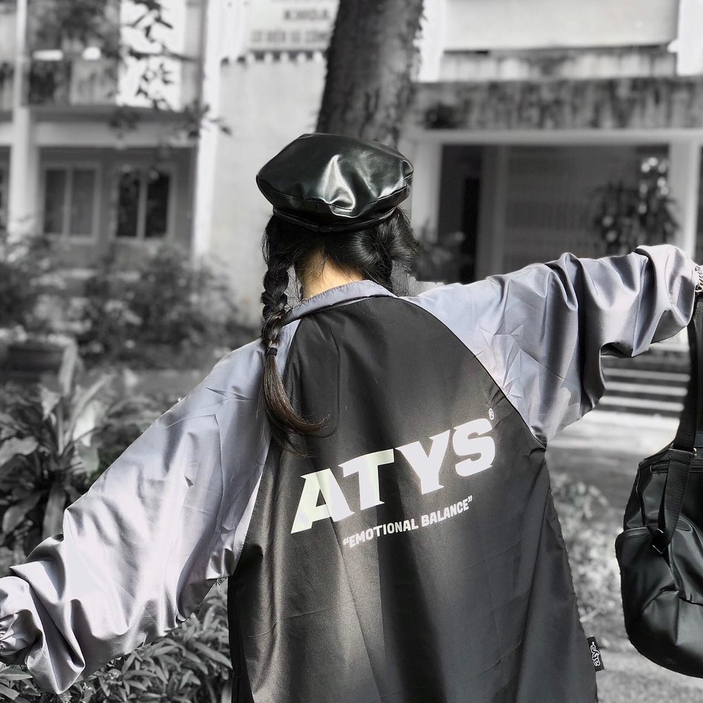 Áo khoác dù Jacket ATYS màu đen phối xám form rộng unisex nam nữ