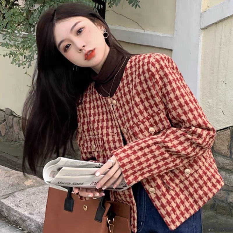 ÁO KHOÁC DẠ TWEED QUẢNG CHÂU MÀU KẺ ĐỎ THANH LỊCH NỔI BẬT