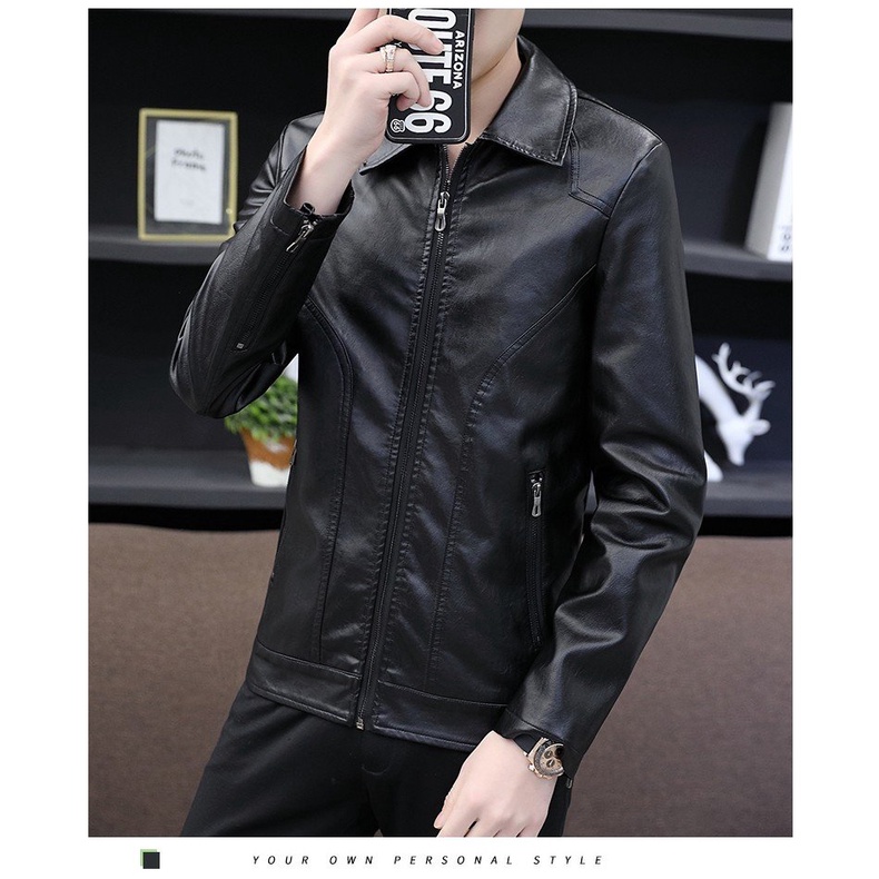 Áo Khoác Da Nam Thái Phối Túi Kéo Cao Cấp