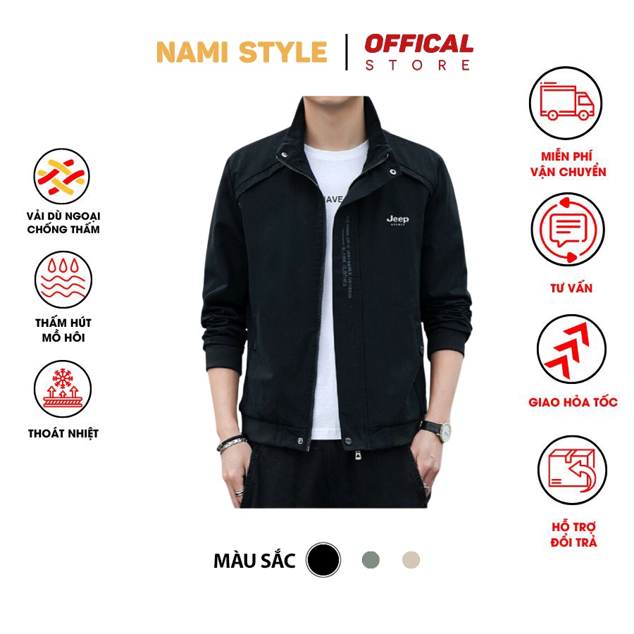 Áo khoác gió nam cao cấp cán 2 lớp dù dày, có 3 màu và 5 size-AK06