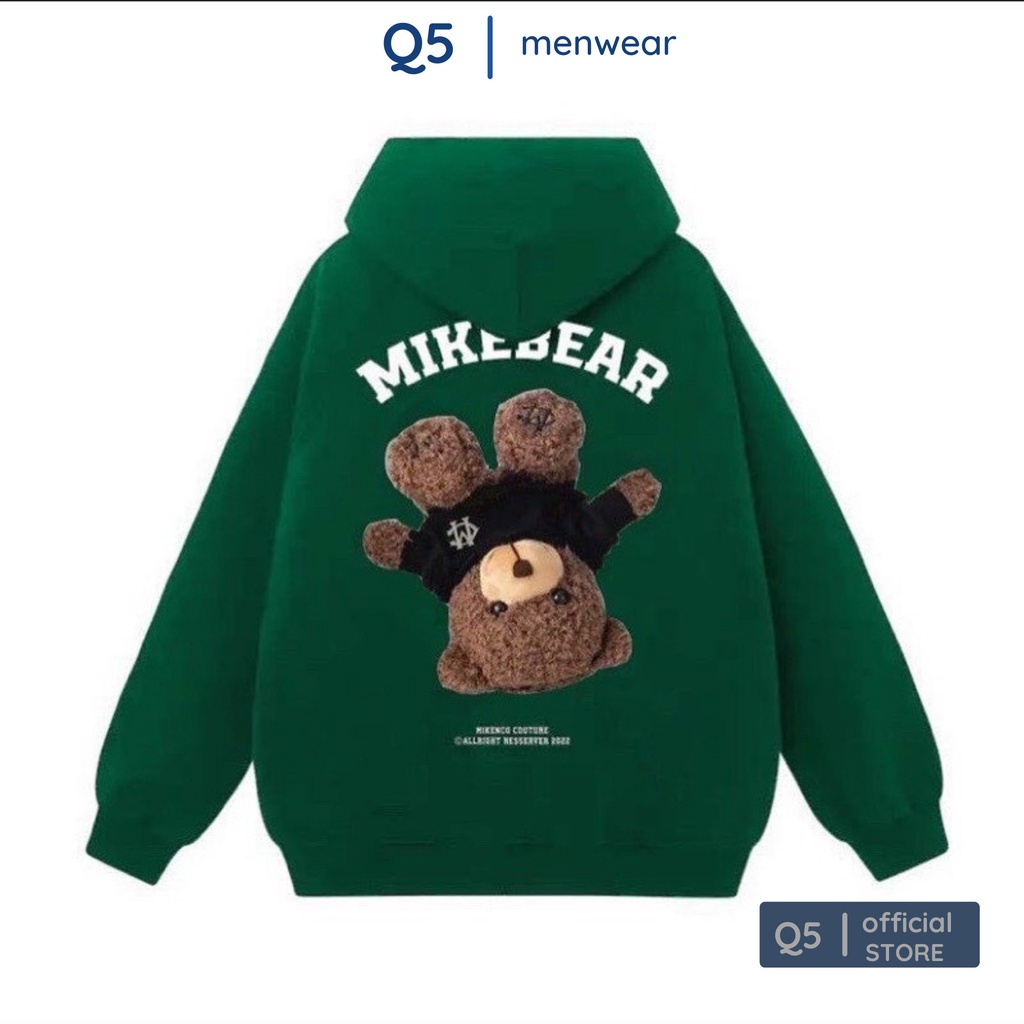 Áo Khoác Hoodie Nam Nữ Q5 in hình gấu ngược Mikebear, chất nỉ bông giữ ấm, form rộng, unisex