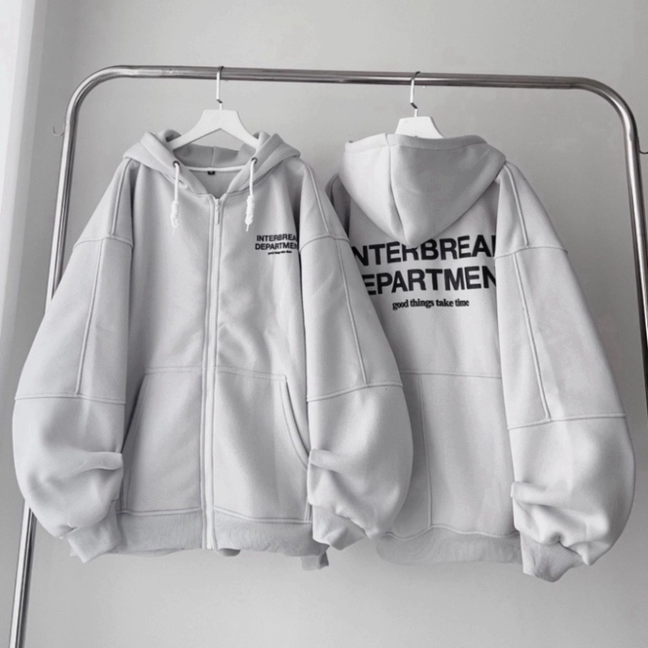 Áo Khoác HOODIE ZIP INTERBEAK nỉ bông mũ to in chữ 2 lớp Unisex form rộng nhiều màu phong cách