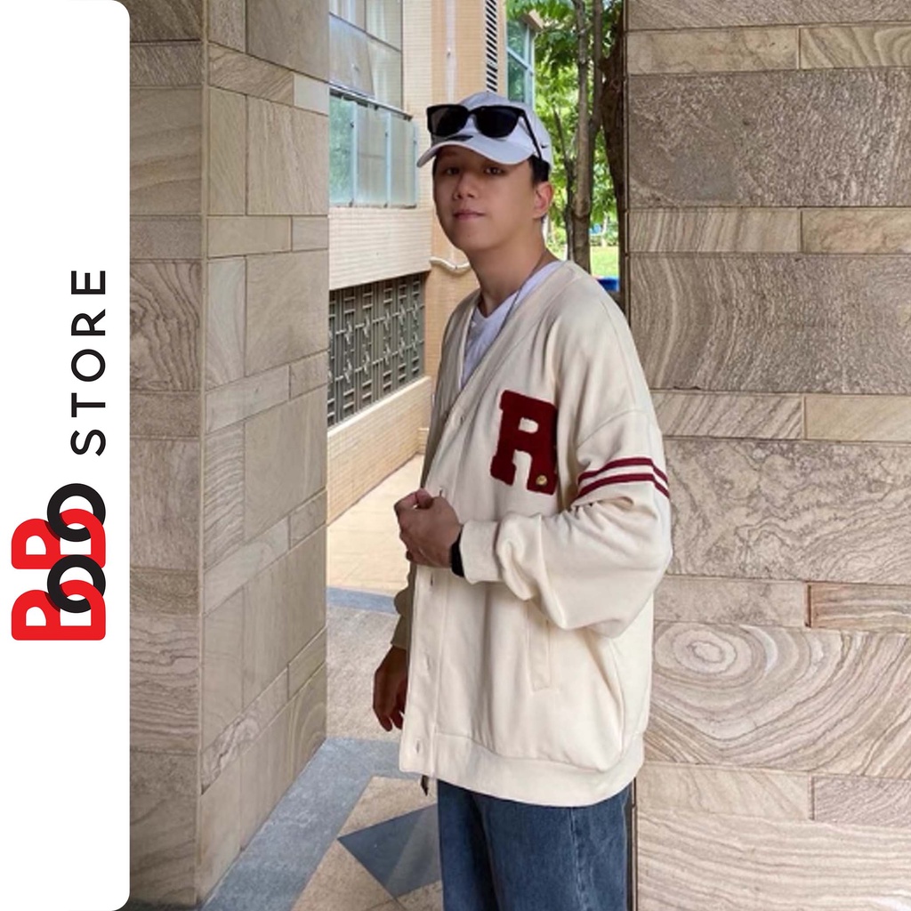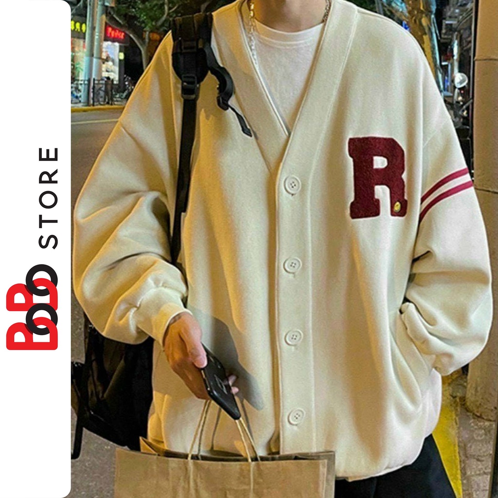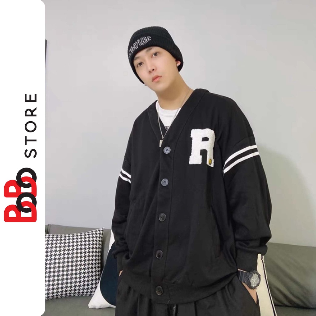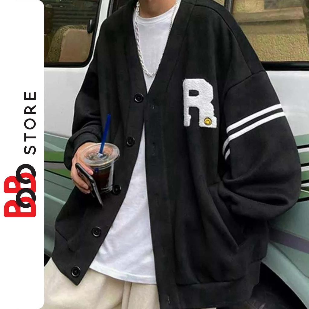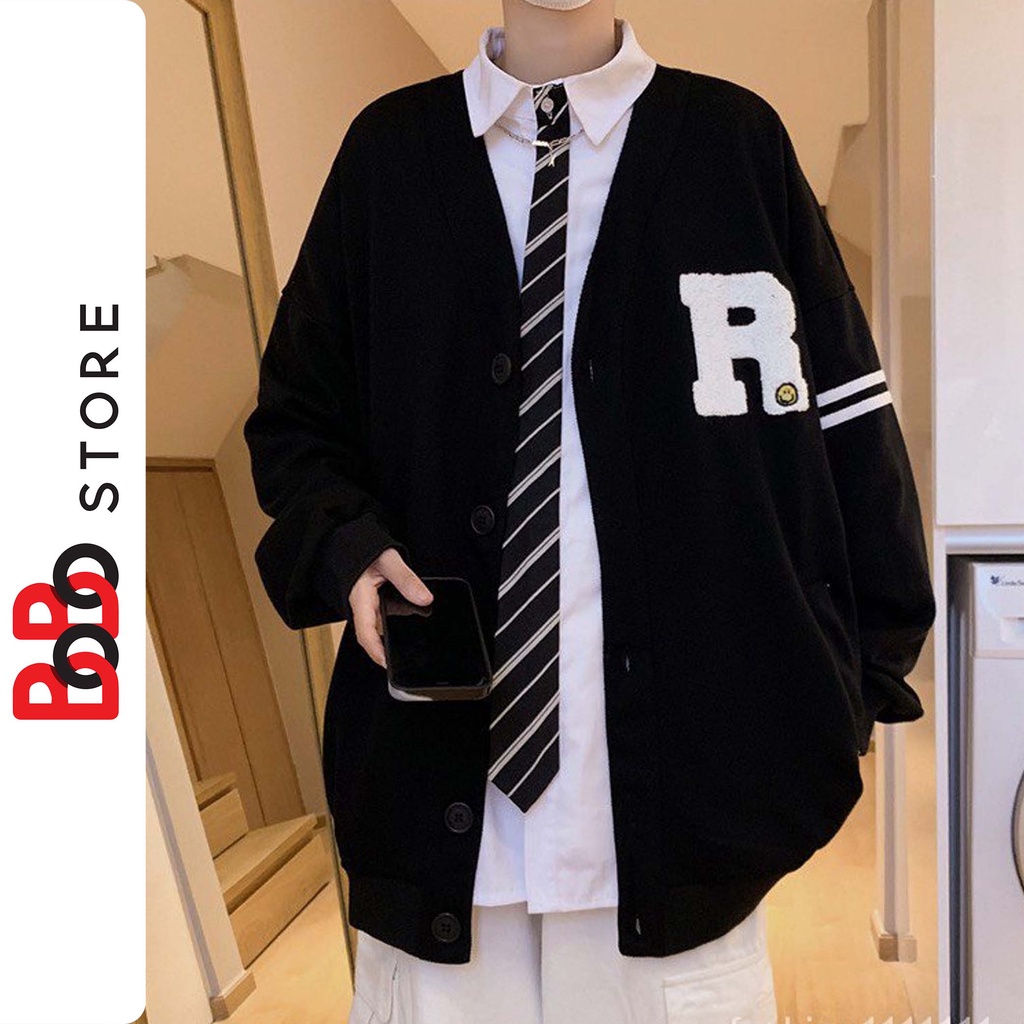 Áo khoác nỉ CARDIGAN thêu chữ R tay áo kẻ sọc dành cho nam nữ- BoBo Store