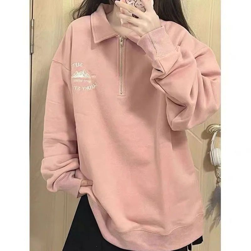 Áo Khoác Nỉ POLO Dáng Rộng Phong Cách Retro Mỹ Thời Trang Xuân Thu Mới Cho Nữ