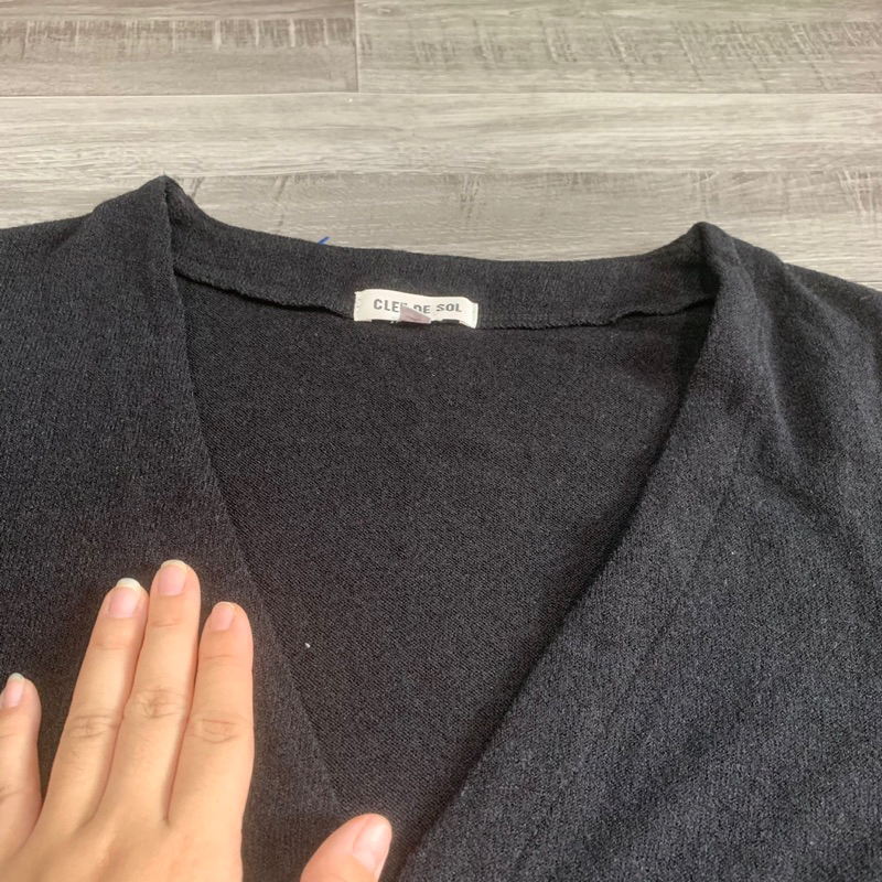 Áo Khoác Nữ Cardigan CLEF DE SOL Xuất Nhật Cổ V Tay Dài Màu Đen 1 Túi - Size M
