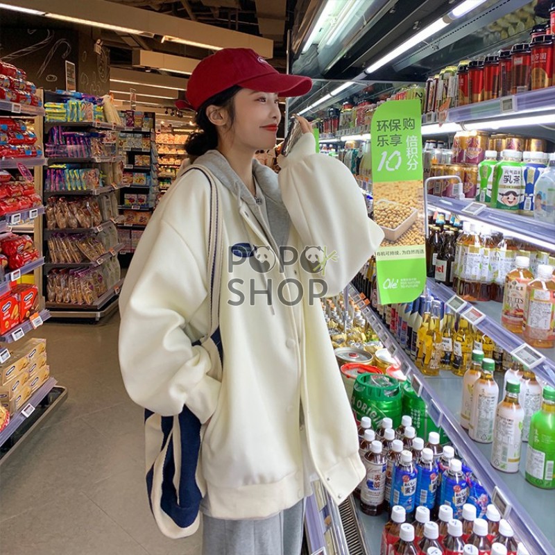 Áo Khoác Thu Đông Rộng Ulzzang Có Mũ Trùm Đầu 2021 Phong Cách Mới