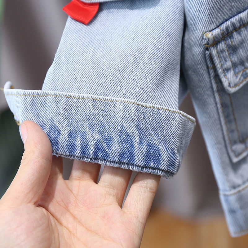 Áo khoác vải denim mỏng in hình Doraemon thời trang cho bé trai