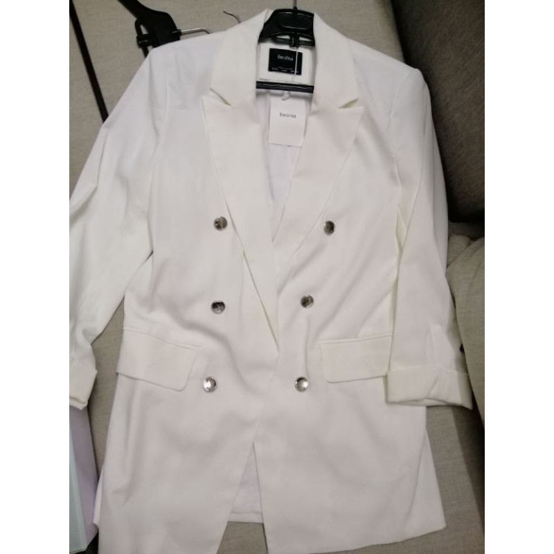 Áo khoác vest BSK 6 cúc đủ Size màu trắng như hình, cực sang chảnh nhé. Chiều dài áo 72cm, tuỳ theo size số mỗi +-2cm. Size: S Thông số áo như sau: Size S: < 52kg Màu Trắng Chiều dài áo: 72cm Vai áo có độn, áo 2 lớp vải cực xịn, mịn. Kiểu áo vest 6 cúc ko khuy, 2 bên