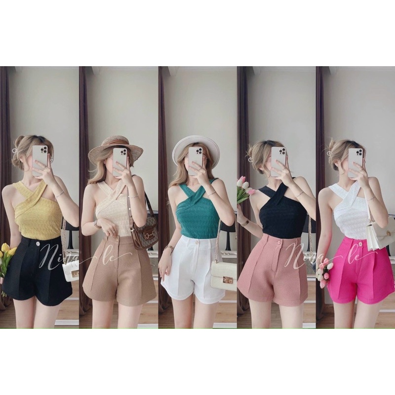 Áo kiểu dây yếm chéo cổ chất xốp mềm, Áo thun kiểu dáng ôm sexxy AK8622 - NhiNhi Shop