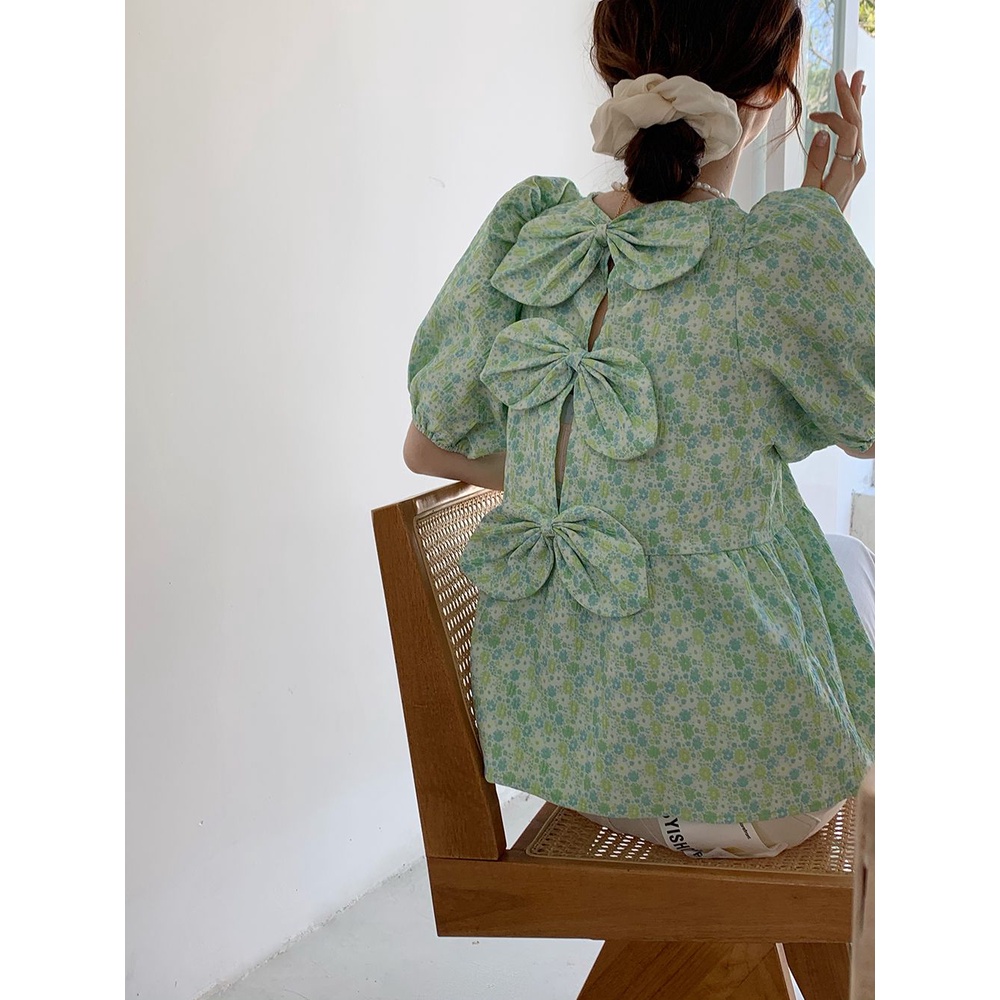 Áo Kiểu Tay Phồng Thắt Nơ Sau Lưng Phong Cách Hàn Quốc Ngọt Ngào Cho Nữ