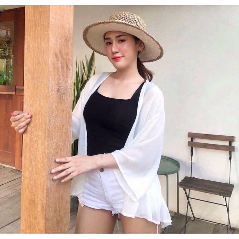• Màu : Trắng - Đen • 𝗙𝗿𝗲𝗲𝘀𝗶𝘇𝗲 💓 Một chiếc kimono mỏng nhẹ nhàng thích hợp cho những ngày hè, đi biển, hay đi chơi đâu chỉ cần khoác nhẹ lên thui siêu tiện lại vừa xinh 🔹 Chất Vảib siêu đẹp, mịn mát - sờ thui đã thích, mặc thoải mái •Chiều dài tầm 70cm (dá