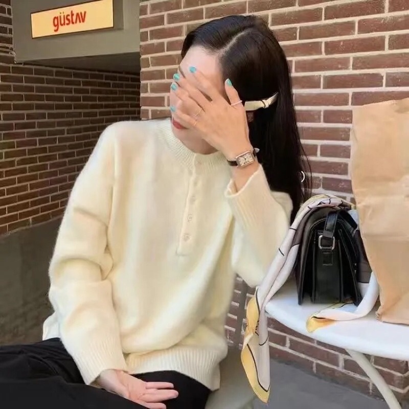 Áo Len Cổ Tròn | Áo Len Có Cúc Cổ Tròn màu Pastel dài tay thu đông phong cách Ulzzang Hàn Quốc