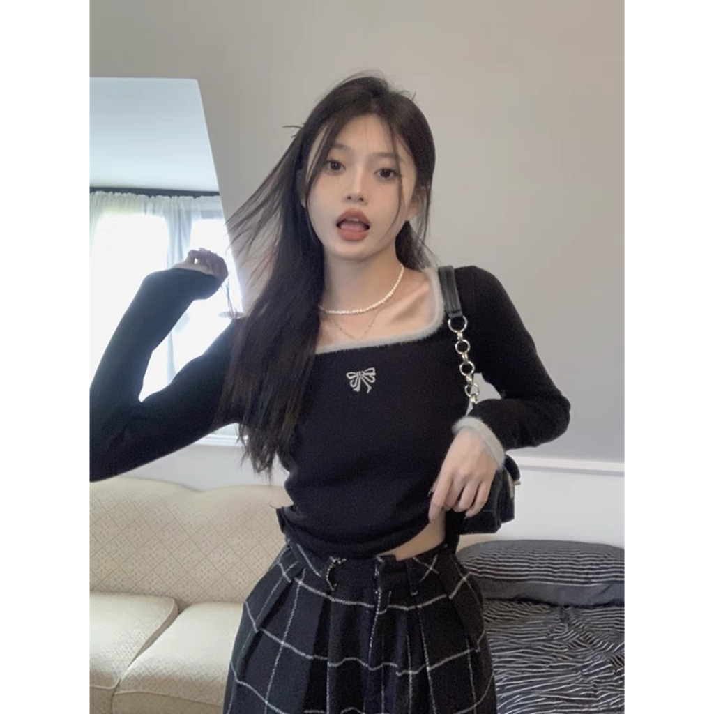 Áo len dệt kim cổ vuông phối viền 02281 - 247store.vn