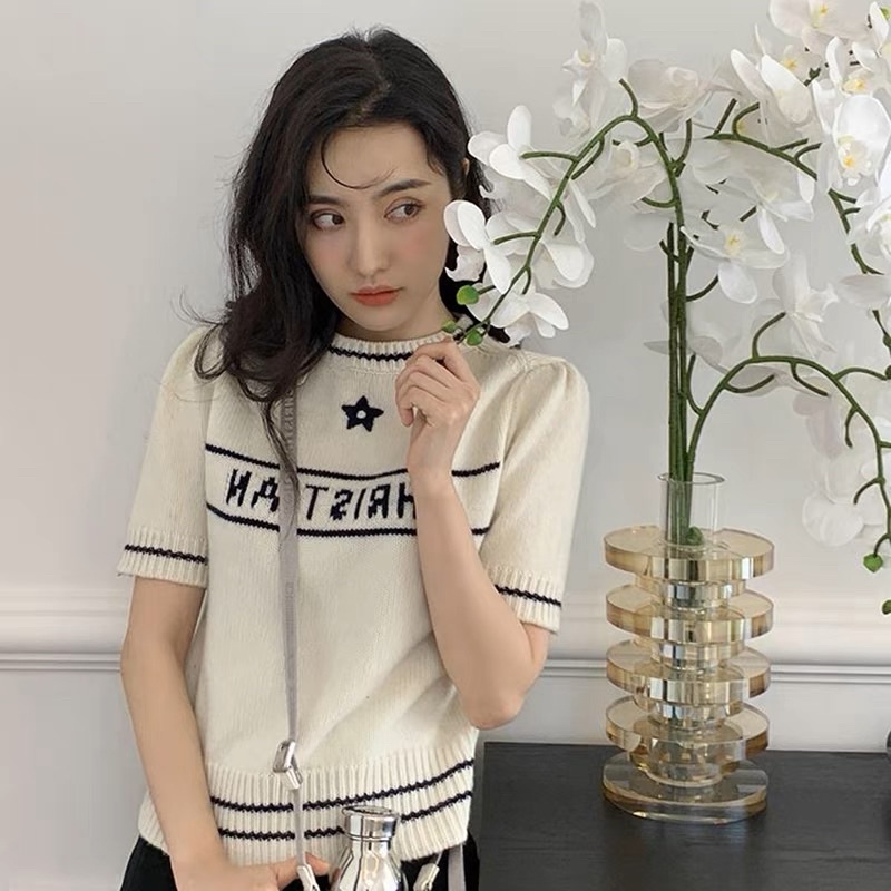 Áo Len Dệt Kim CD 2 màu đen và trắng cộc tay