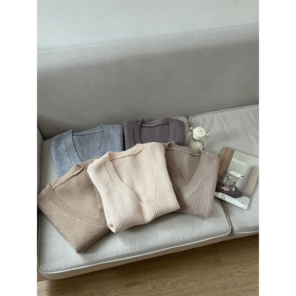 Áo len ghile đan cổ tim hàn AL-902 CHALIN dáng rộng dễ mặc phối đồ hàn