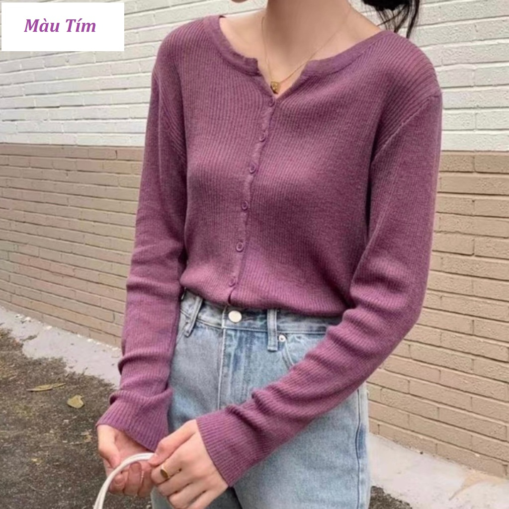 Áo len nữ dài tay có cúc Freesize, áo Cardigan nữ len tăm cổ V có cúc 213T