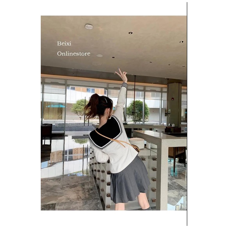 Áo len thủy thủ trắng eo bo dây nơ buộc thời trang hàn quốc