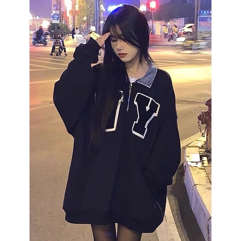Áo Nỉ Sweater Polo Zip VY Form Rộng Vải Dày Dặn in cao cấp Dáng Oversize Phong Cách Ulzzang Unisex Nam Nữ