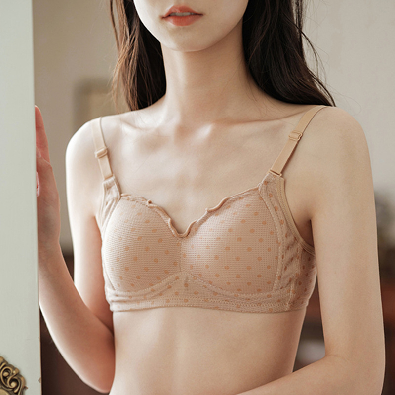 Áo Ngực Không Gọng Mút Mỏng, Áo Lót Nữ Cotton Đũi Chấm Bi 3 Nấc Cài AMYBRA A361