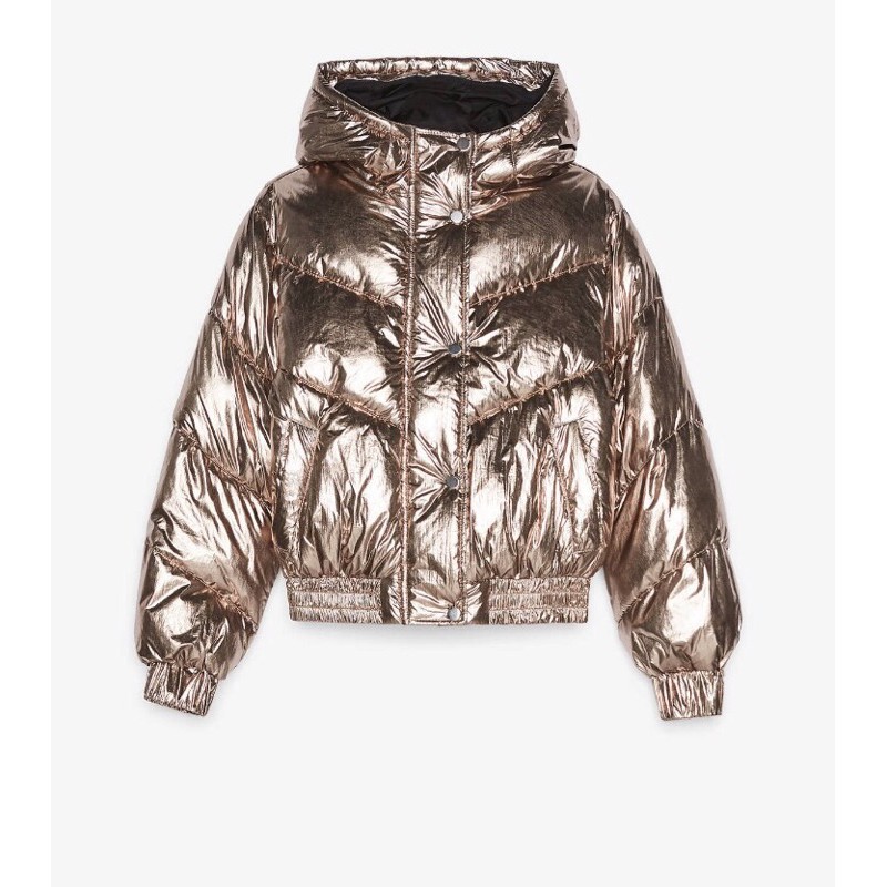 Áo phao béo dáng ngắn metallic