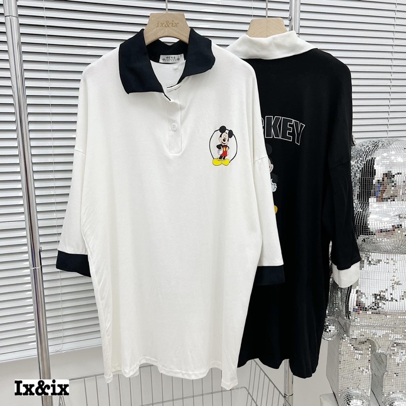 Áo Polo Cổ Bẻ Chuột Mickey Dáng Thụng Tay Lỡ