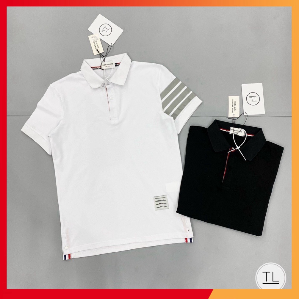 Áo Polo unisex 4 vạch tay thời thượng vải cá sấu cotton phong thái trẻ trung cực sịn sò