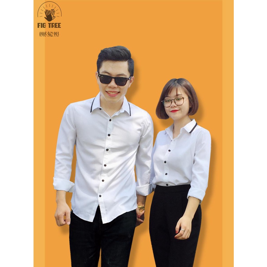 Áo Sơ Mi Cặp Fig Tree Màu Trắng Phối Cổ Viền Đen Siêu Xinh