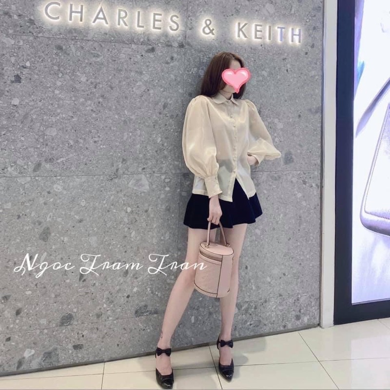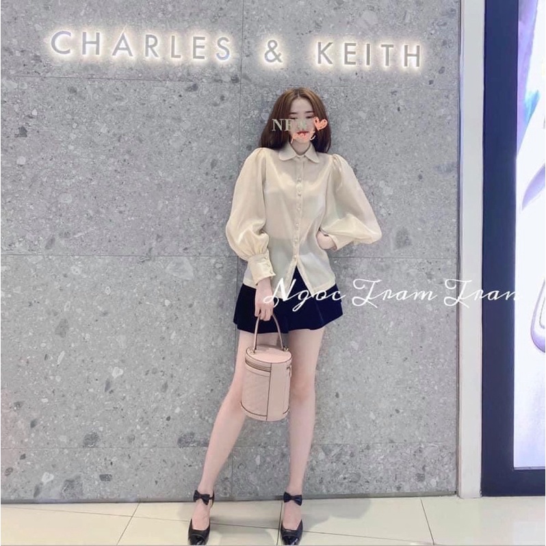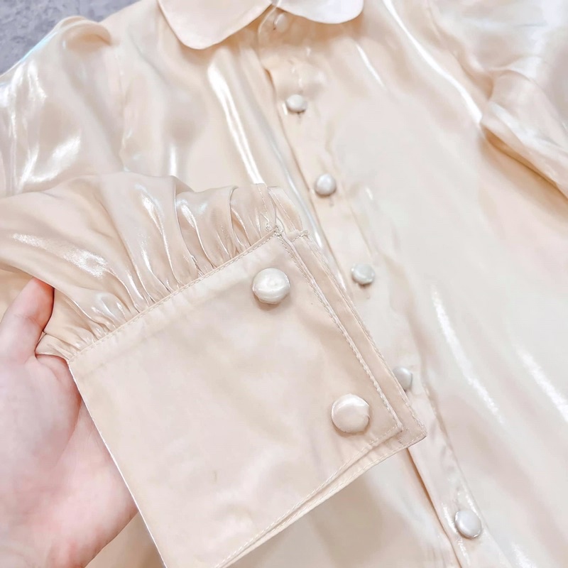 Áo sơ mi cổ sen cúc bọc Oganza