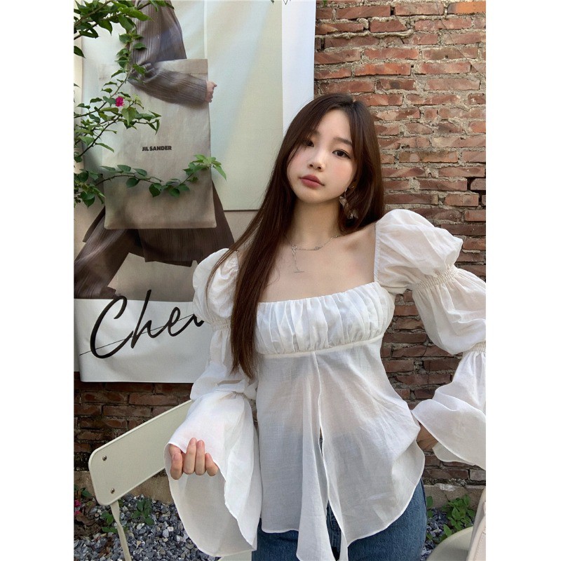 Áo sơ mi cổ vuông tay loe cho phụ nữ mùa hè 2021 mới của Pháp sang trong