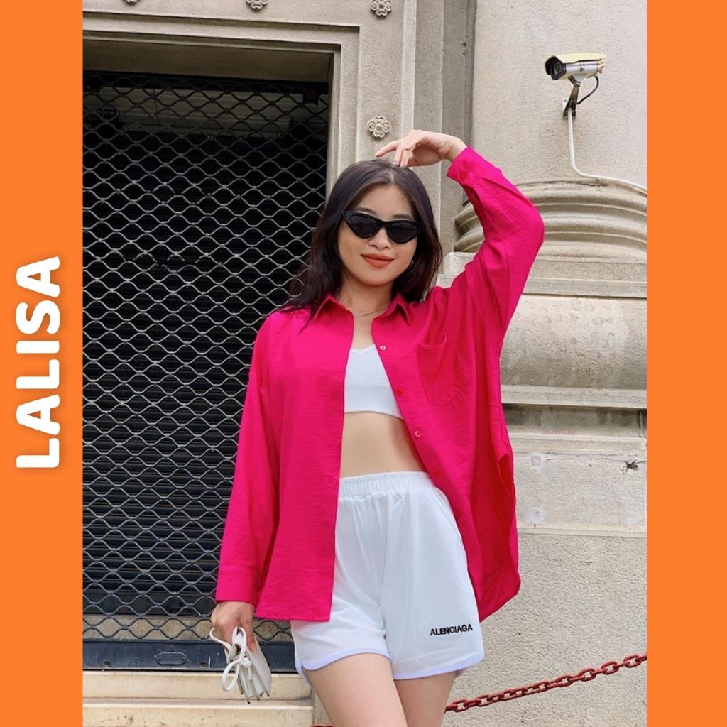 Áo Sơ Mi Kiểu LALISA Áo Sơ Mi Form Rộng Màu Trắng Xanh Hồng Nữ Tay Dài Kiểu Hàn Quốc Vải Cao Cấp AO014