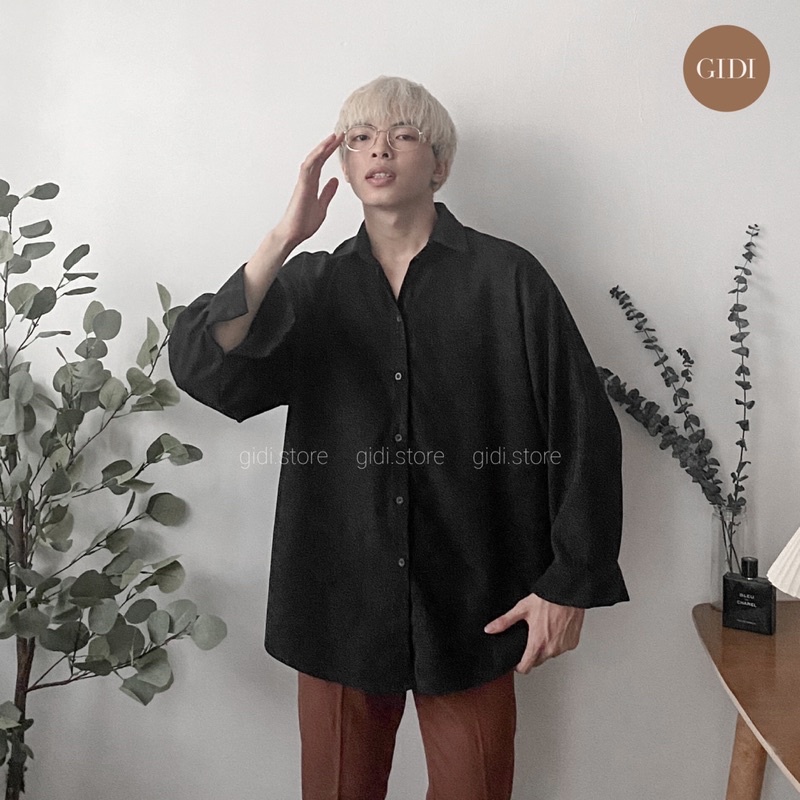 Áo Sơ mi KUPI Nam Nữ Unisex OVERSIZE tay dài, vải nhung tăm form rộng, không nhăn