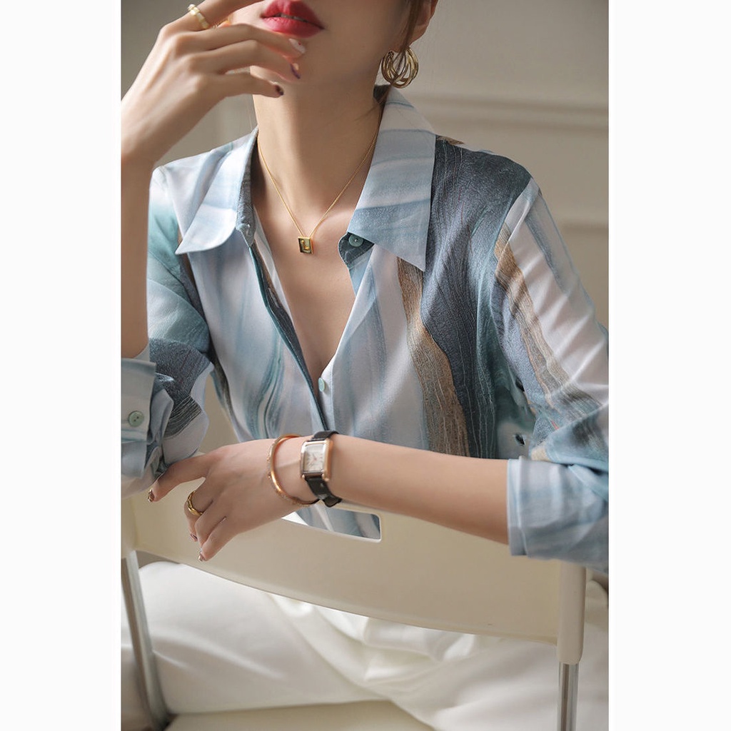 Áo Sơ Mi Lụa Satin Tay Dài Màu Sắc Gradient Cao Cấp Thời Trang Dành Cho Nữ
