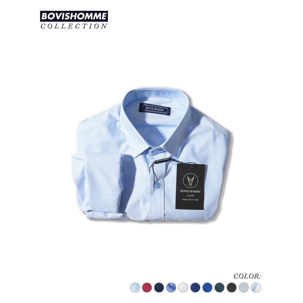 Áo sơ mi nam Bovis Homme tay dài SD006, màu xanh dương nhạt, Form slim, chất liệu modal, mặt vải mềm mượt, thoáng mát