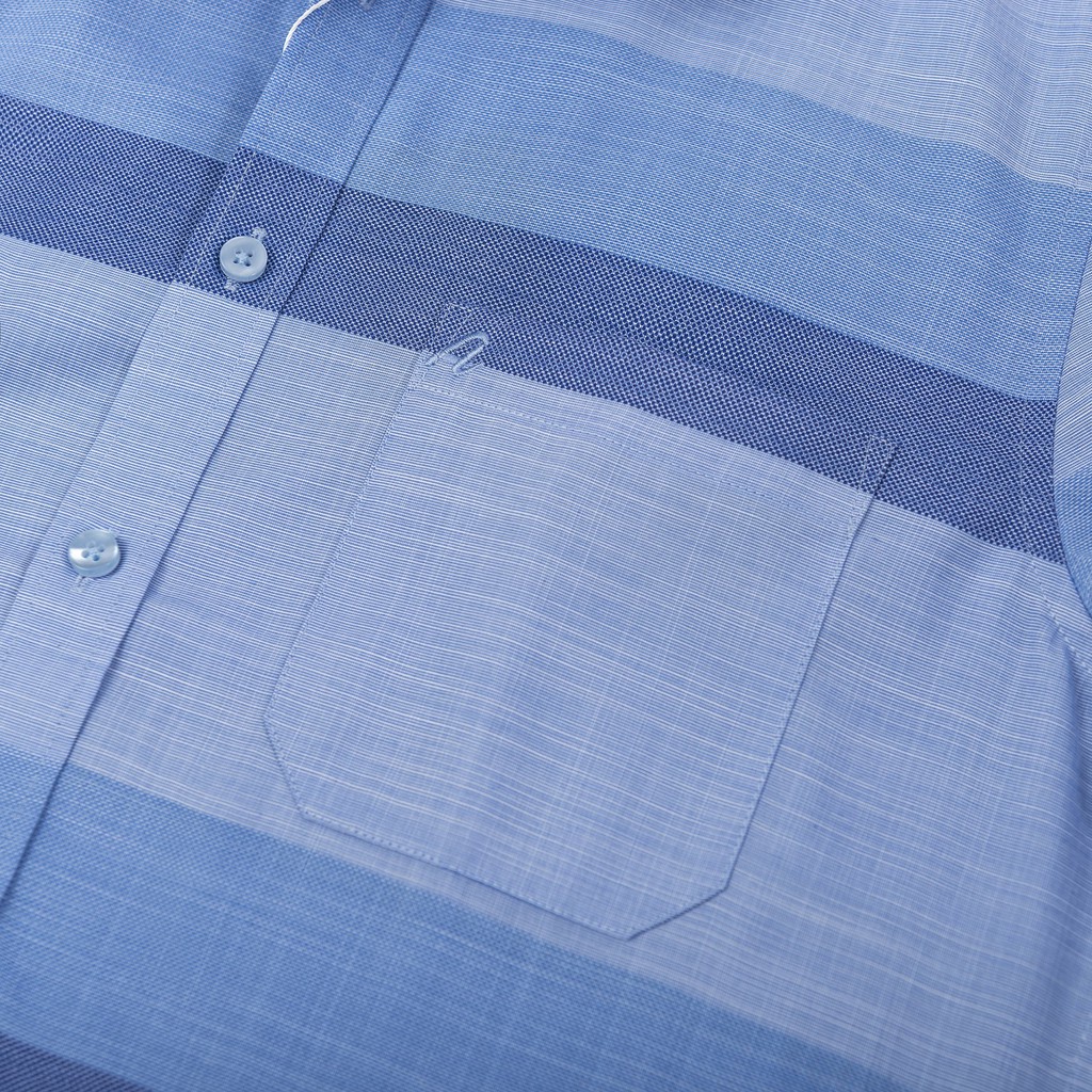 Áo Sơ Mi Nam Công Sở Trung Niên Thương Hiệu Anton Màu Xanh Dương Dài Tay Vải Sợi Tre Họa Tiết Kẻ Caro - X8566