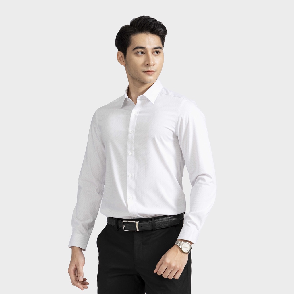 Áo sơ mi nam dài tay ARISTINO màu trắng in họa tiết chéo tinh tế, thanh lịch - ALS17802