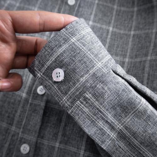 Áo sơ mi nam kẻ caro dài tay chất đũi màu Ghi Xám. Áo đũi nam kiểu dáng body ôm slimfit