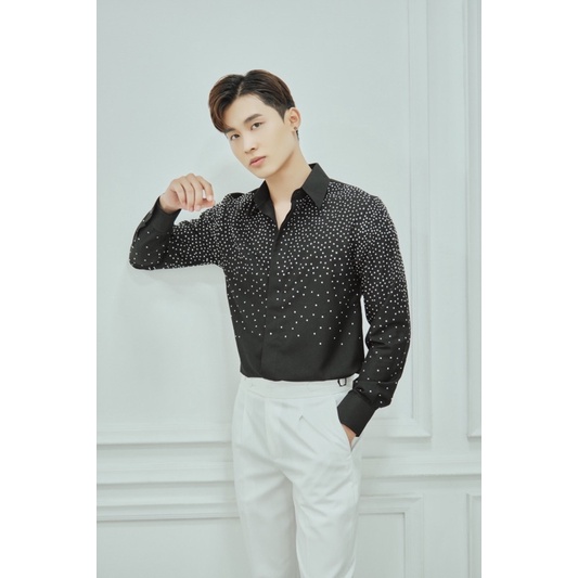 Áo sơ mi nam tay dài thiết kế đính hạt cườm phản chiếu ánh sáng chất vải ford Hàn Quốc hạn chế nhăn MAMO fullbox