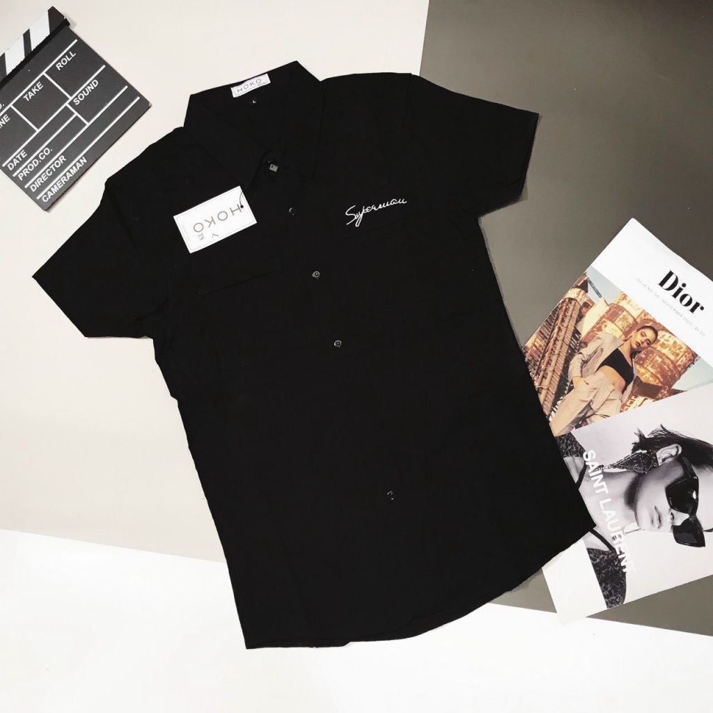Áo sơ mi nam tay ngắn chất vải Đũi Nhật cao cấp thêu chữ Spperman phong cách sang trọng lịch lãm