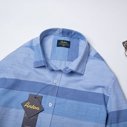 Áo Sơ Mi Nam Xanh Dương Kẻ Caro Ngắn Tay Công Sở Trung Niên Thương Hiệu Anton Vải Sợi Tre - GD566