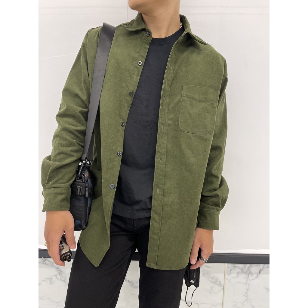 Áo sơ mi nhung tăm màu rêu tay dài nam nữ form rộng thời trang đẹp có nhiều màu hottrend MOHALI MHL002