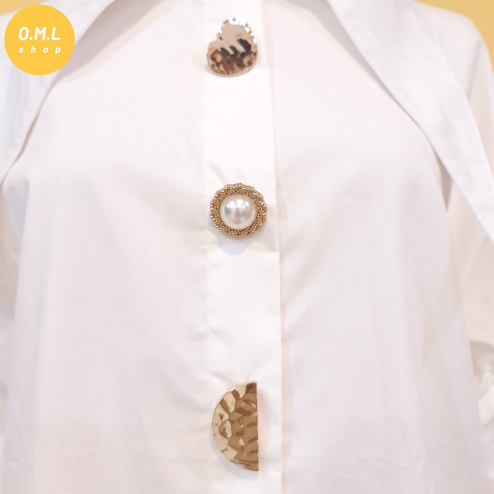 Áo sơ mi tay dài cổ tam giác nhọn nút kiểu thời trang