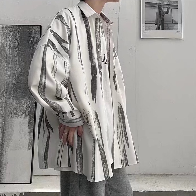 Áo Sơ Mi Tay Dài Dáng Rộng Màu Nhuộm Phong Cách Hàn Quốc Thời Trang Cho Nam Giới