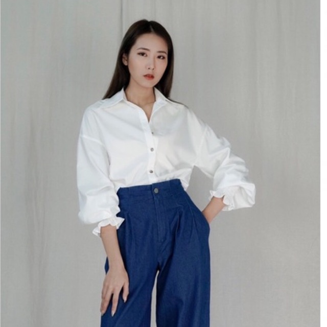 Áo sơ mi trắng cho nữ cổ đức tay chun không nhăn Caffeine Studio